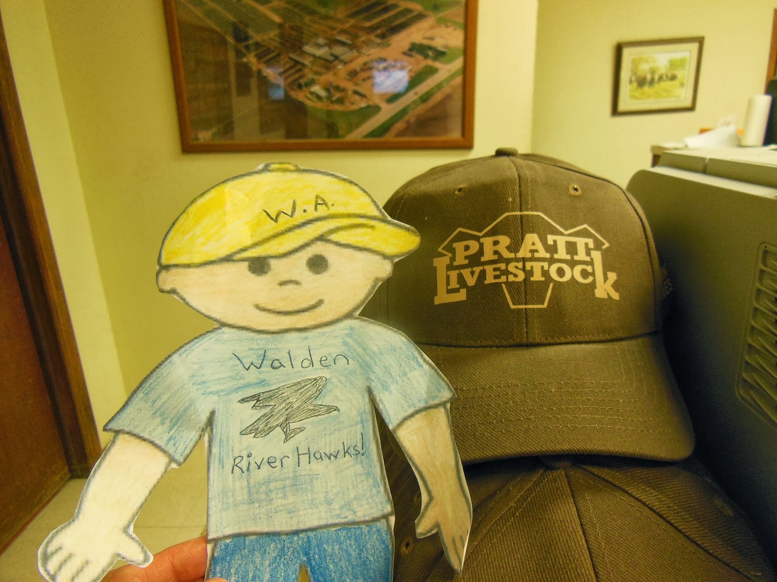 I'm not usually a fan of fast-talking men. But I make an exception when it's a cattle sale. Our buddy, Flat Aggie from Walden Academy in Willows, California, doesn't say a whole lot, but we hope he's learning a bunch about what life is like on a farm in South Central Kansas. Flat Aggie is a project of my southeast Kansas blog friend, Nicole, and her Tales of a Kansas Farm Mom blog. Flat Aggie goes to farms all across the country to learn about