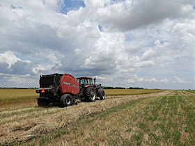 Yesterday afternoon, he got rolling again after it finally dried out enough. He kicked out 130 bales, and then we got another 0.25" of rain. In one field, he had two more rounds to go before it would have been finished. Oh well! There's nothing that can be done about it.