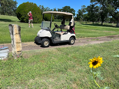 We were at the Stafford golf course during the holiday weekend. It was the perfect day. I had my favorite golfer with me. It was not too hot and no one else on the course. It was verdant green against a cloud-splattered bright blue sky after some rains. I had a great book to read.